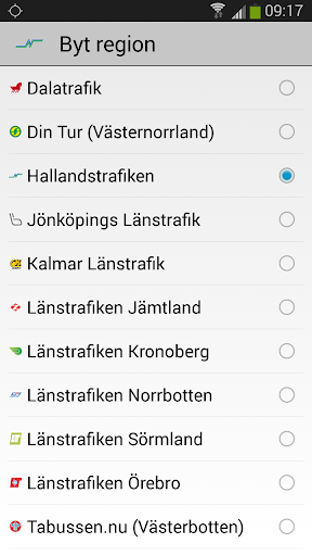 Hallandstrafiken tillhandahåller trafikinformation också när du reser utanför Halland: Använd funktionen "Byt region" så får du tillgång till reseinformation i övriga delar av Sverige.