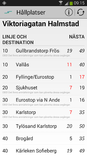 Hållplatsinformationen ger dig en samlad bild av alla avgående bussar från en hållplats samt informerar om eventuella avvikelser och anmärkningar. Reseplaneraren hjälper dig att hitta bästa resan mellan A och B samt
