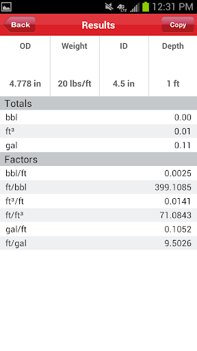 • Look up specifications for your most frequently used tubulars to quickly calculate capacity and annulus volumes with just a few taps.