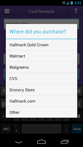 With Hallmark Card Rewards you'll earn a reward for every 5 cards you buy, and the Hallmark Card Rewards app for Android™ makes it easy to report them. Just scan or type the UPC on the back of the card, and you're done.