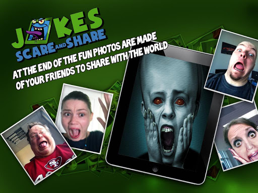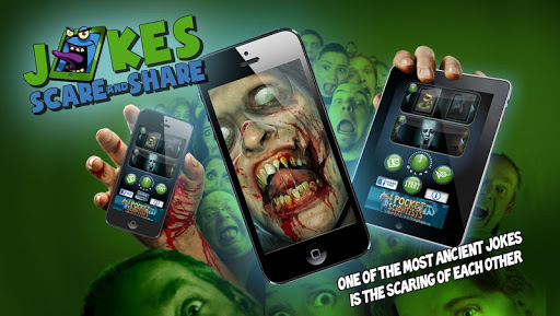 In Jokes - Scare and share you can make fun of your friends with some dark jokes, with images and sounds of zombies, ghosts and other monsters. The camera can capture the moment, when your friends has been scared, so your dark joke can be a worldwide hit sharing it on social networks.