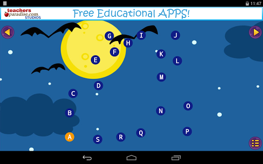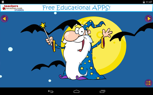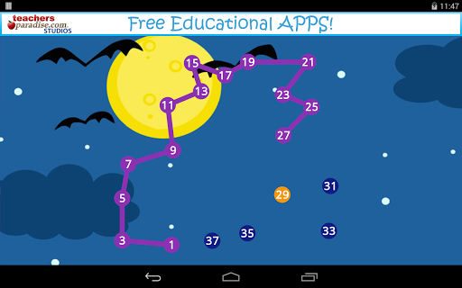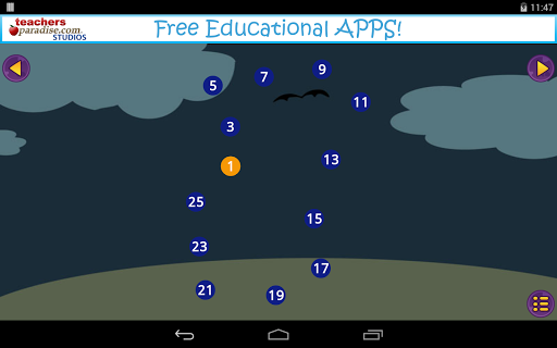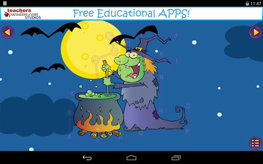 Halloween Dot to Dot for Kids by TeachersParadise.com Studios has some great features such as a random starting order so each puzzle can be played many times! With the 'help' setting turned on, the next dot to be tapped blinks to help the student find the corresponding dot. Our awesome Alphabet mode lets children also learn the alphabetical order while drawing fun Halloween characters.