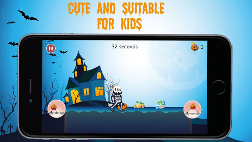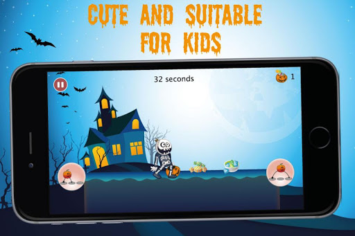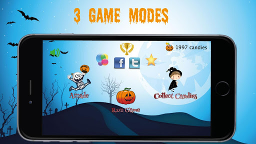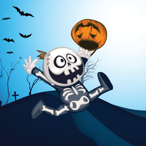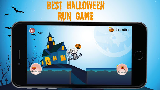 Fun Halloween run game with Pumpkin, Witch and Skeleton run in spooky field and collect candies, apples and maple leafs. Don't jump on spiders and candles.