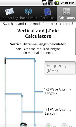 Some simple formulas and calculators are included for quick reference in the field and includes: Yagi, Dipole, J-Pole, Vertical antennas, and wavelength calculator.