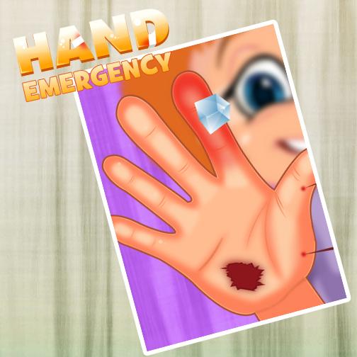 Your first mission is to use the ice to avoid swelling the fingers and after that you can use your doctor tools to remove the thorns and to heal the wound from his palm.
