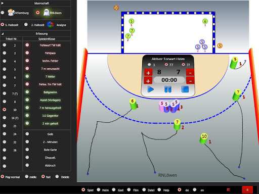 Im Handball können am Spielfeldrand alle Gegebenheiten (Wurfverhalten, Fehlwürfe, Vorlagen, Fehlpässe, Analyse, Fehlpässe u.v.m) des Spiels aufgezeichnet und analysiert werden. Diese wichtigen Informationen können dann sofort visuell an den Trainer/Torwart/Spieler weitergeleitet werden.