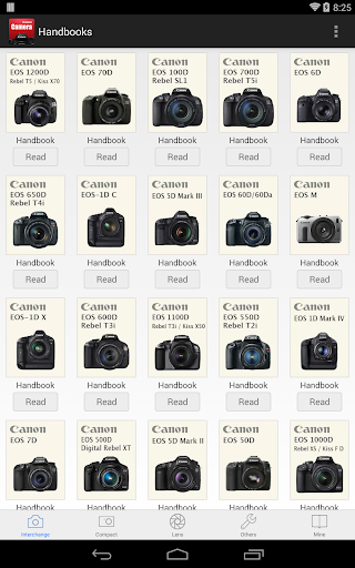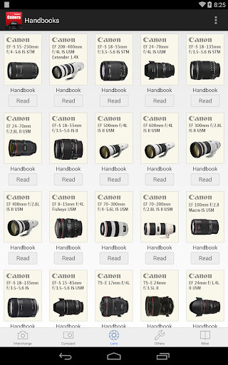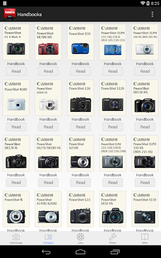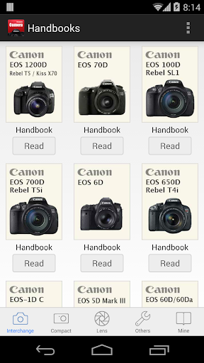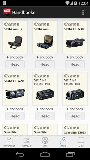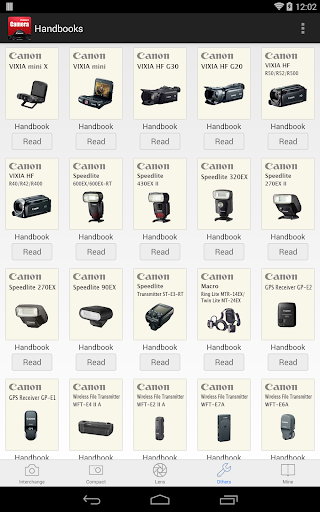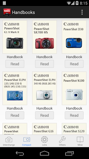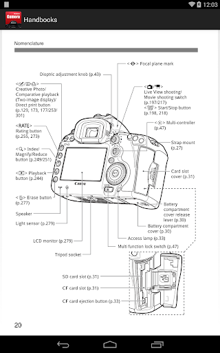 Canon Camera Handbooks is a handbooks viewer app for iPad that allows users to download and view handbooks for Canon digital cameras (Compact and DSLR cameras) and lenses. Handbooks that have been downloaded can be viewed off-line, allowing users to refer to them at any time and any where.