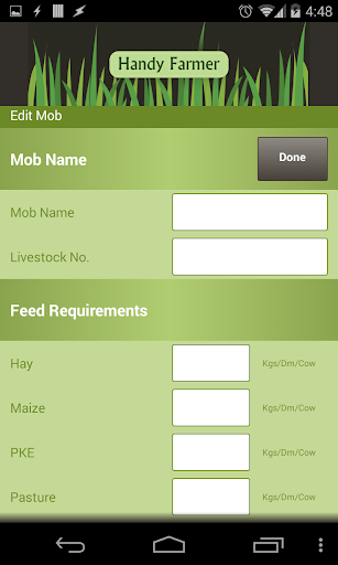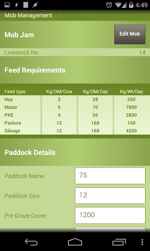 Designed with the dairy industry in mind, Handy Farmer is highly customisable allowing you to create and manage multiple groups of livestock "mobs". Simply tell Handy Farmer the mob size, customise its supplementary feed requirements and assign to a paddock. Livestock groups can easily be adjusted as numbers and feed requirements change throughout the year.