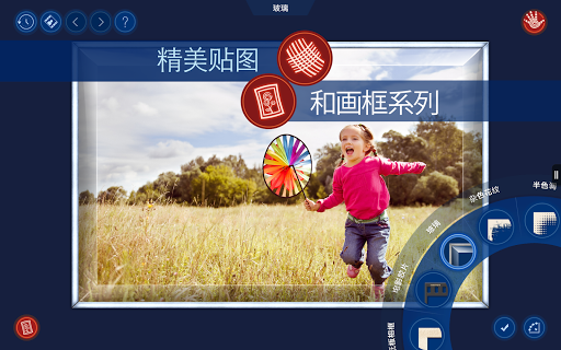 在向全世界展示您的图片之前,为图片加上合适的画框是十分重要的。快捷图片编辑处理器有一系列出彩的画框供您选用。以下画框会为您的图片加上点睛之笔:秋叶,卡通,电影,玻璃,杂色花纹,半色调,蕾丝,喷漆,铅笔素描,相册,偏光,怀旧照片,海贝,褶皱和复古。