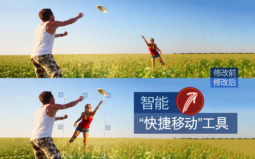 您只需轻轻一点,就可以去除图片中多余的内容。这使得动感图片润饰前所未有地轻快,便捷。