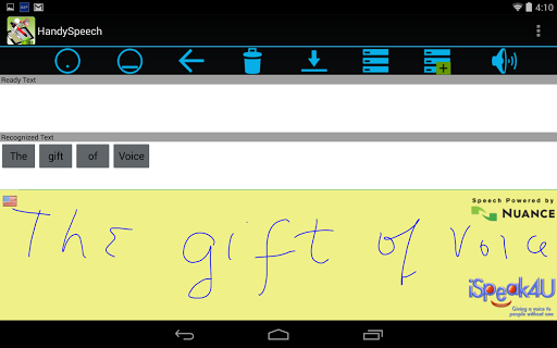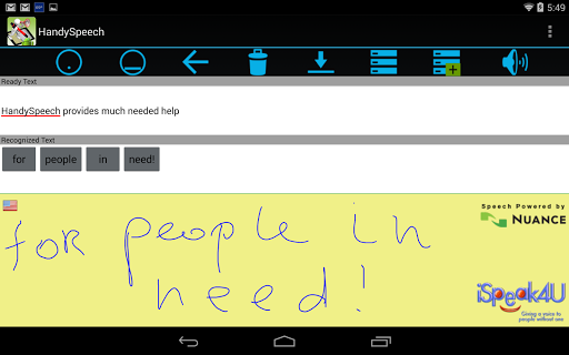 The only handwriting-to-speech application for mobile devices, HandySpeech provides people a quick and easy conversational tool.