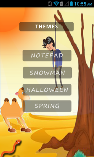 Hangman is a visual treat for kids. It comes with four themes, mainly Snowman ,Notepad,Halloween,Spring.