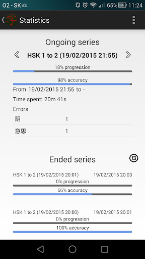 You can resume your ongoing series, follow progress and get statistics on ongoing series like time spent, how many mistakes you did and on what Hanzi, accuracy and progression.