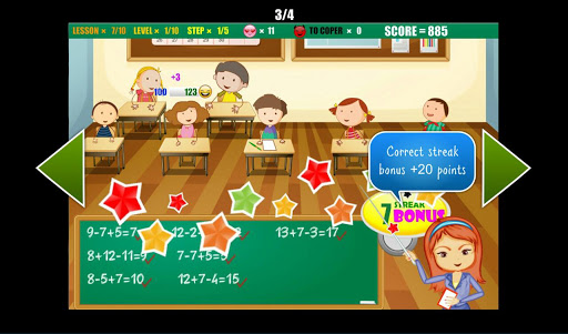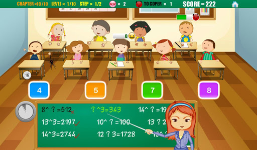Your task is to pass all 10 levels of each chapter within a certain time. During each level You have to answer to 5 math questions from each pupil given in the level (addition, subtraction, multiplication, division, fractions, finding greatest and smallest numbers e.t.c). You have 20 seconds for each math question. It's a perfect math workout for fast calculations and also it is a good speed calculation test for parents.