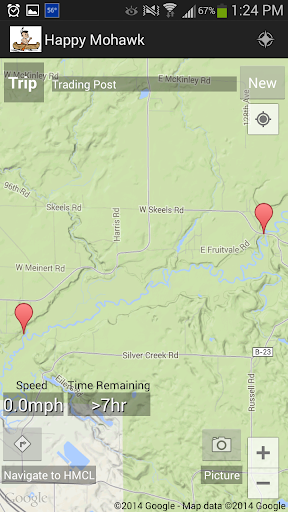 Happy Mohawk Canoe Livery in Montague Michigan. This app can be used to track your progress along the White River showing your speed and current position. You can determine where your destination is located and take pictures along the way!