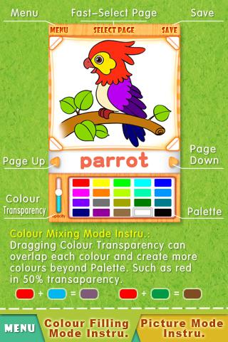This is an interesting cartoon coloring program. You could fill all blank areas with your favourite colors. Just through quick choosing on colors and transparency, to overlap colors many times and then mix your desired hue. After coloring, save the whole picture and it will appear in flash card mode. In this mode, the pictures produce sounds and the words would be in standard English voice. Such function allows you to learn English pronunciations, by clicking the "Record" to record your speech and clicking "Play" to listen to the standard speech. Or you could imitate the animals calls, maybe you will become a mimicry performer!