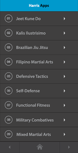 This app contains a ton of information on Bruce Lee's Jeet Kune Do, Kalis Ilustrisimo, Brazilian Jiu Jitsu, Filipino Martial Arts, Functional Fitness, Self-Defense, Defensive Tactics, Mixed Martial Arts and Military Combatives.