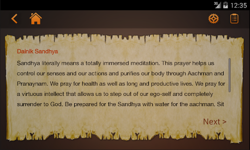 The Havan App empowers everyone, from novices to experts, to perform the ancient Vedic rituals of Havan and Sandhya. Users choose the occasion for the Havan, its duration, and then as the audio plays, can swipe between Mantra and meaning. Users can get instructions, as needed, including animations on how to perform the Havan. Settings gives users the ability to toggle the language, currently between Hindi and English. Users can choose to play Mantras manually, or autoplay the entire Havan, as well as change the speed of the audio. The app can accommodate environments with low connectivity speeds, and supports offline usage, by storing the last three Havans played on the device. The app includes Bhajans or devotional songs, and users can choose to have them play at the end of the Havan, or go straight to them by tapping the music symbol on the Havan selection page.