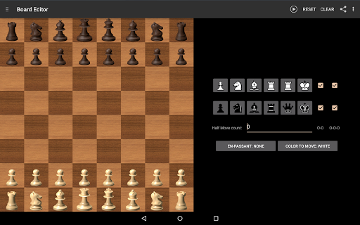 • Create and play your own positions using the board editor.