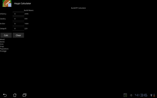 Haypi calculator is an application designed to assists players on the game Haypi Kingdom. This application has been designed to eliminate the need for a player to do any math while playing that game, and give accurate numbers when calculating in game conditions.