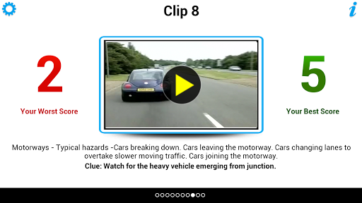 The app has been designed carefully to replicate the same experience you will have in the real test. When in test mode, tap on the screen when you identify the hazard. The sooner you identify the hazard the more marks you get. The maximum marks being five and minimum would be zero.