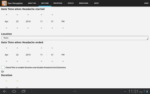 4. Date, Time and Duration of Headaches