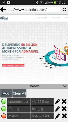 Header Modifier App lets user Test any URL in it’s in-built Browser and allow them to add/edit header parameters before loading the same. This App is targeted for Developers and QA who frequently need to test URL while modifying Header on run-time.
