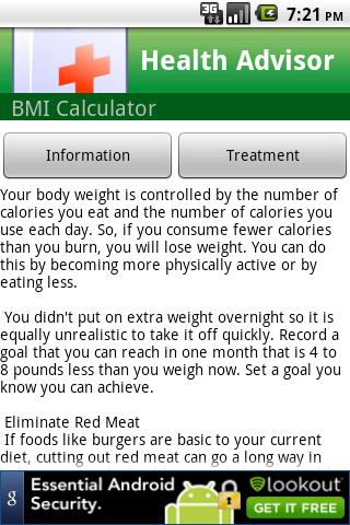 After the application gets the BMI score of your body, it will gives you an appropriate tips, suggestion, and information about your health.