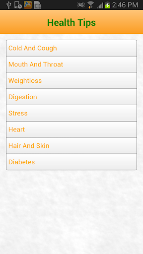 Health tips application provides natural tips for most common diseases like cold, cough, flu etc. Even has the tips to take care of your hair and skin. Divided into five categories, Cold and Cough, Hair and skin, diabetics, Heart and blood pressure, provides useful and tips taken from nature without any side effects.