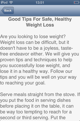 Find out all about Healthy Eating For Weight Loss with this brilliantly researched app. It has lots of helpful information about eating properly and attaining good health.