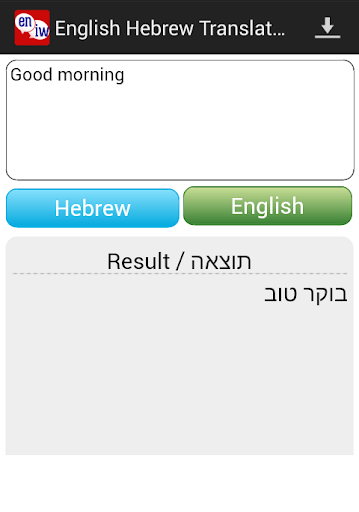 This free app is able to translate words and texts from english to hebrew, and from hebrew to english. Best app for easy and fast translations, which can be used like a dictionary.