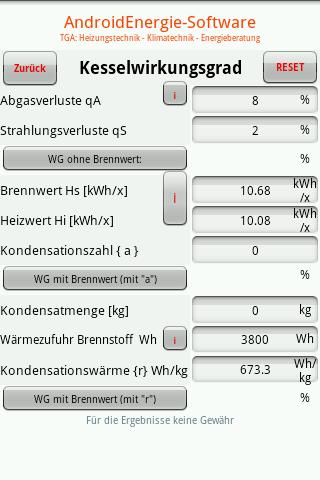 Android APP für Berechnungen rund um den Heizkessel: