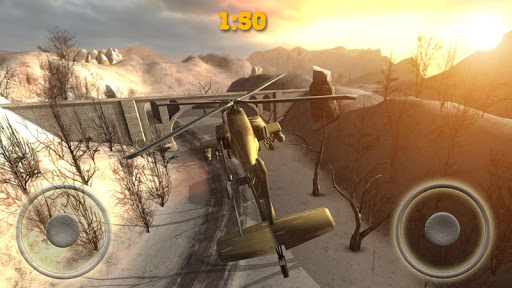 Here on our army base you'll find a ready for combat and rescue mission helicopter known as Hughes. You'll be flying solo missions to pick up supplies, drop off reinforcements and rescue stranded soldiers.