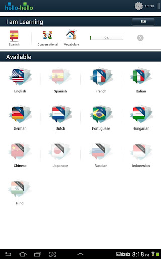 Learn Spanish, French, Italian, German, Portuguese, Dutch, Chinese, Japanese, Russian, Hungarian, Indonesian and Hindi in a single app.