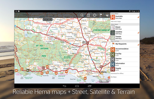 Hema Explorer is an offline GPS navigation app that combines reliable Hema maps with 40,000 points of interest and more for guiding 4WD, touring and camping adventures throughout Australia.
