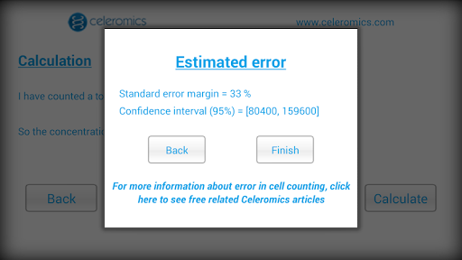 HEMOCYTOMETER FORMULA performs this calculation in a VERY EASY way, with no room for error.