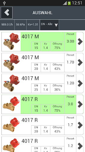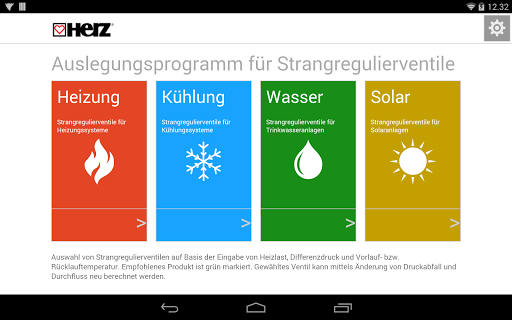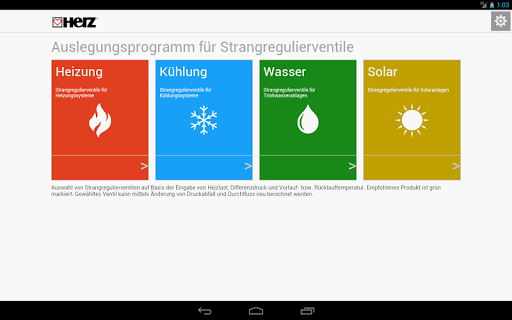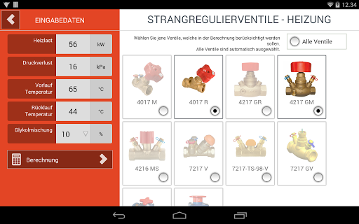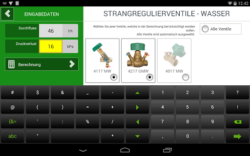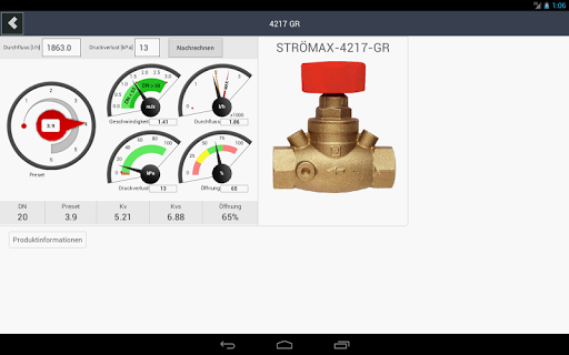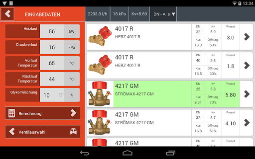 Herz Armaturen GmbH bietet kostenloses Gerät für die Voreingestellung Position Berechnung mit Darstellung von Druck und Volumenstrom Betriebssystem Werte innerhalb der Grenzen des gewählten Ventile.