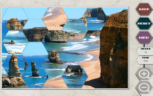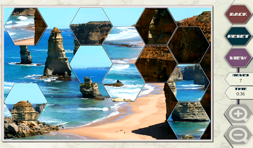 HexSaw's hexagon pieces put a new shape in an old puzzle and jigsaw. Puzzle enthusiasts will enjoy a new twist on an old favorite. Start with a jumble and swap pieces until the picture is revealed.