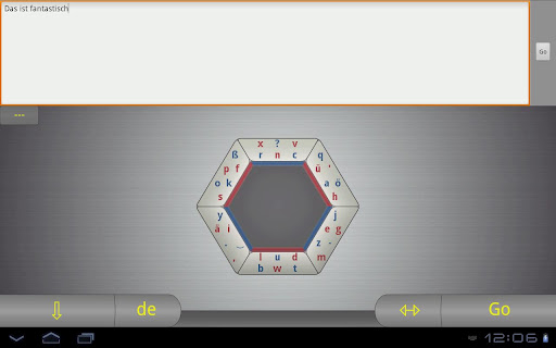 It analyses pointer moves through a hexagon on the screen. When two hexagon faces are consecutively crossed, a new character is generated. It is very similar to ordinary writing but more efficient.