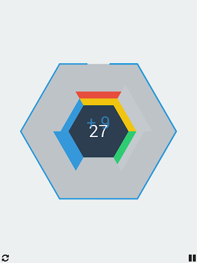 Rotate the Hexagon to prevent the blocks from stacking outside the outer grey hexagon!