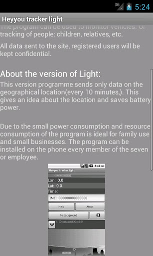 «Heyyou tracker light» - a program designed for remote monitoring of geographical location, GPS or GLONASS devices.