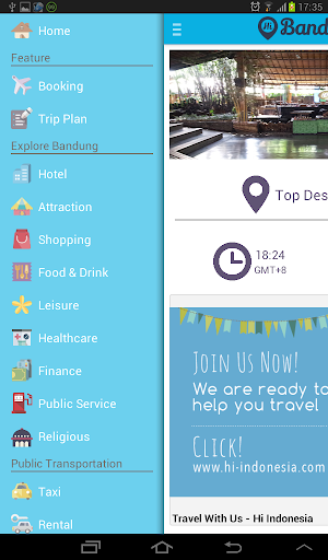 Bandung is one of the world's tourist destination famous for its unique culinary and natural resources. Hi Bandung is an application which provides the most complete information about point of interest in Bandung. This application can be used by tourists to travel to Bandung. Hi Bandung help people to find restaurants, attraction place, hotels, shopping place, and other top destination which people often to visit. We also provide transportation info that easy to use which includes navigation information how to get the location from tourist' location.