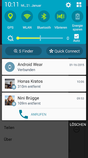 Als Nutzer von Android Wear erhälst du Benachrichtigungen direkt auf deine Uhr. Mit nur einer Bewegung kannst du nahe Kontakte über deine Uhr sogar direkt anrufen.