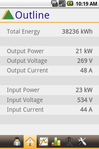 This application works with the next generation solar inverters of Hyundai Heavy Industries. It aims to be an identical surface to that of the devices' screen. Outline can be monitored in real time, graphs can be downloaded.