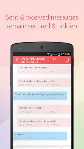 In a nutshell, now private text messaging no longer has be unsecure, with the ability to hide your SMS messages, its one last thing to worry about. With this app, you can send secure SMS messages anytime anyplace. Moreover, you can securely record call or calls that cannot be shared with others.