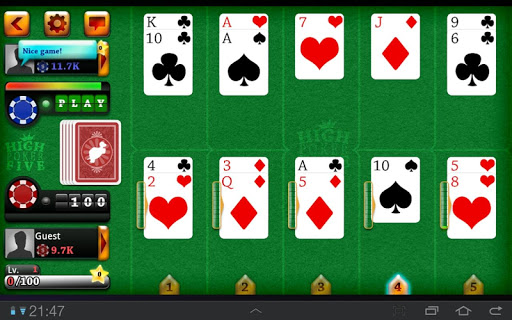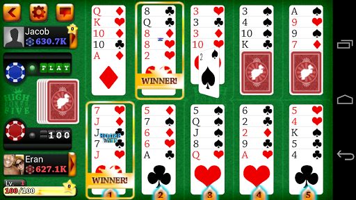 Choose your bet in advance and start head to head competitive High5Poker game.