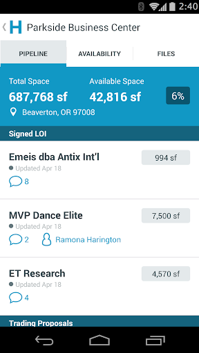 Brokers use Hightower to stand out in the industry, streamline the reporting process, and get real work done away from the office. Owners use Hightower to track deals across their portfolio and communicate in real time with their leasing teams.