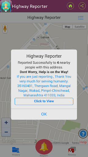 Report Incidents on Highway and let Police , Ambulance and other people know about incident/accident details in one touch.