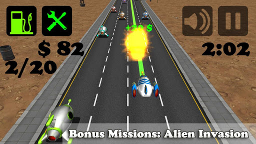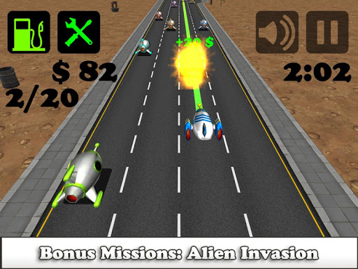 Highway Run gives you the chance to drive racing cars, convertibles, schoolbuses, ice cream trucks, limousines and even flying saucers in different missions. Some of them even have special abilities, like lasers or missiles to blow away everything bothering you.