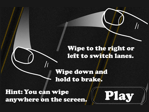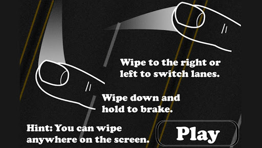 Just wipe the right or left to change lanes and wipe down and hold to brake. Some cars are able to shoot their weapon by wiping up. The car accelerates by itself to avoid cramps in your fingers.